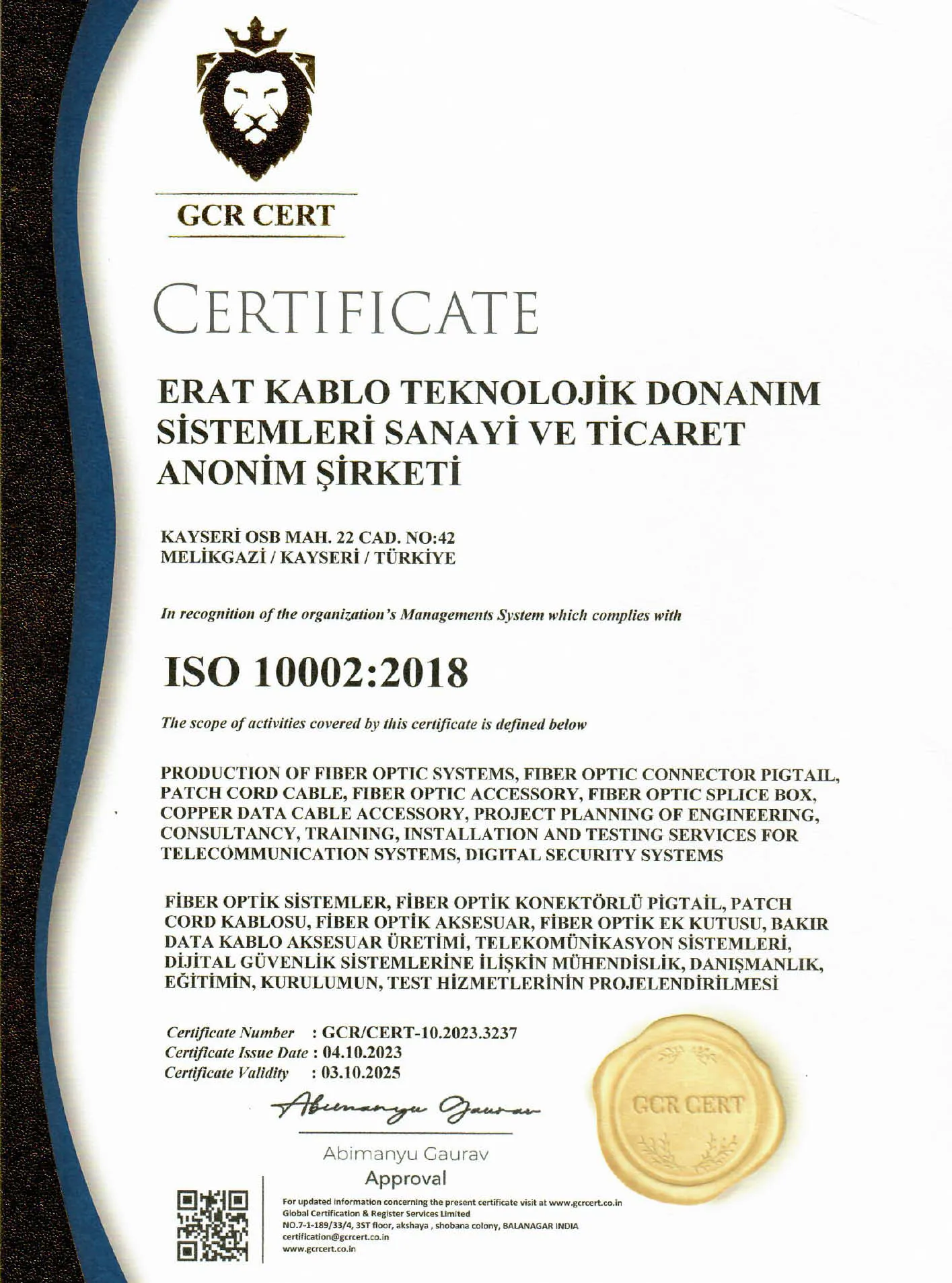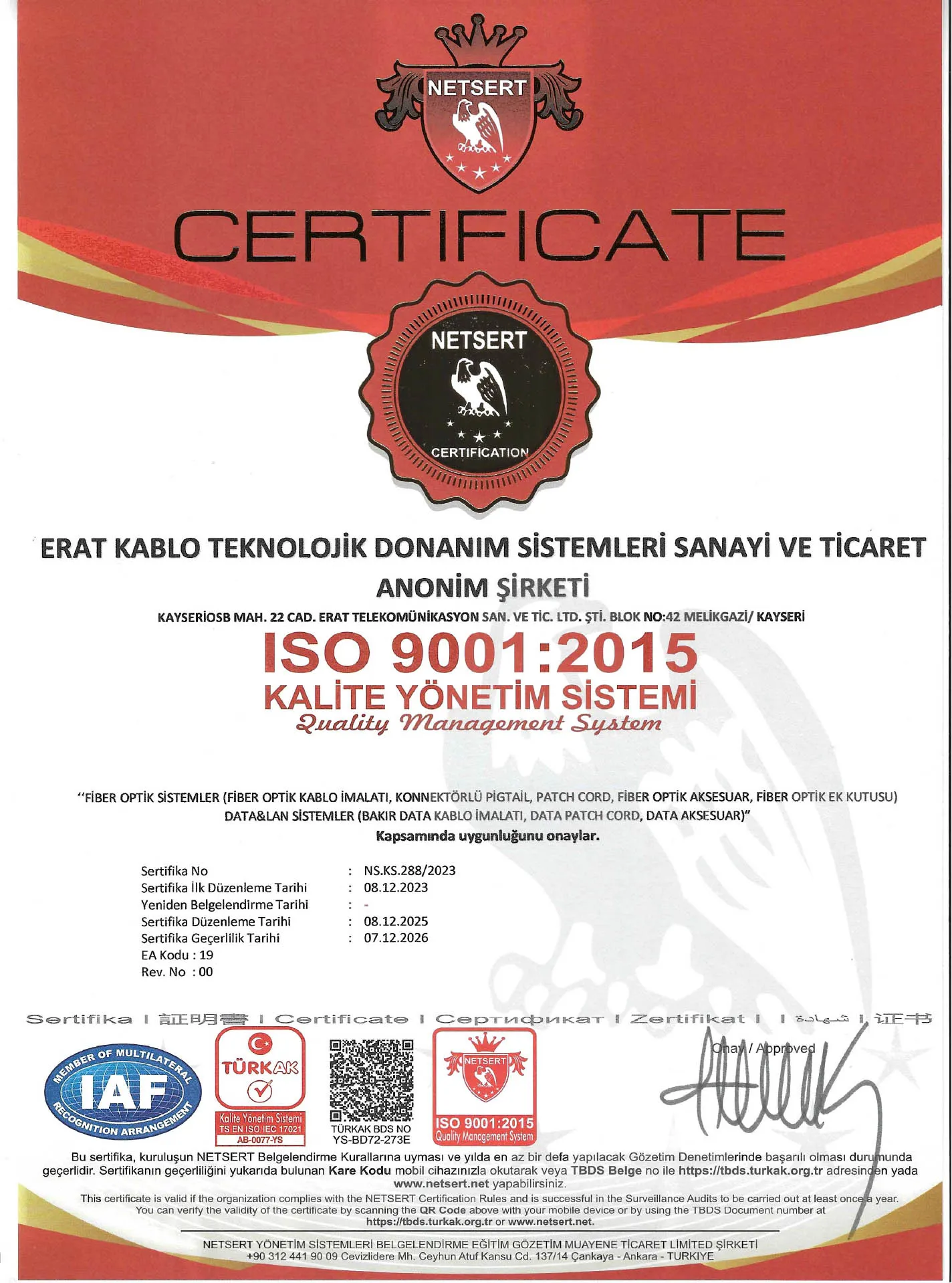 Ürün ve hizmetlerimize ait kalite belgelerimiz Türkiye, Avrupa, Rusya, Amerika ve Uzak Doğu'da geçerliliği olan tüm kalitifikasyon belgelerimize bu sayfadan ulaşabilirsiniz.